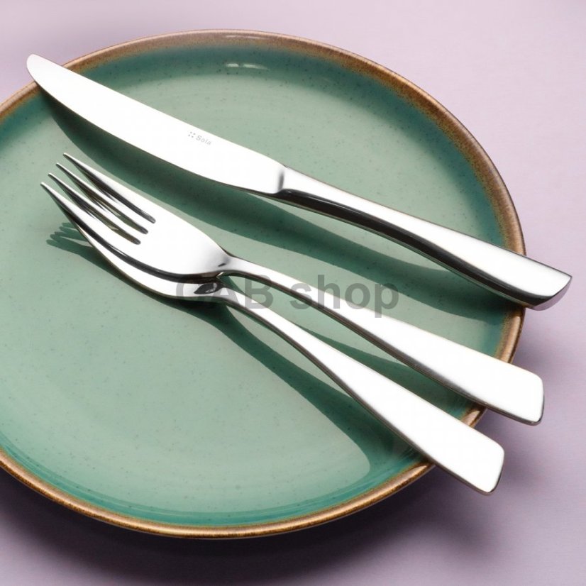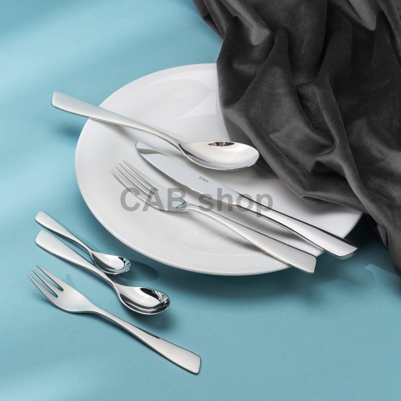 Evőeszközkészlet, amely első pillantásra kitűnik a többi modell közül. A széles, ferde végű fogantyúk stílusos darabká teszik. Dúsítsd hal- vagy steakkéssel, és tálald otthon a teljes Pure kollekcióval.
